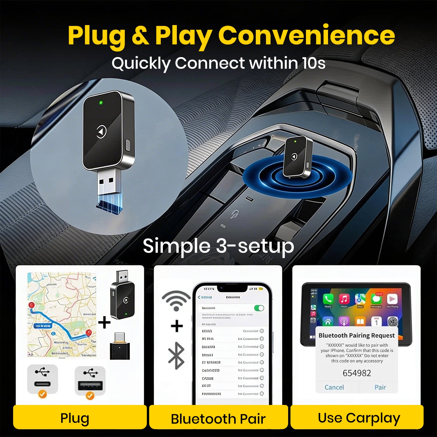 • Compatibility (Car): Works with any vehicle (2016+) having factory-wired CarPlay or Android Auto.